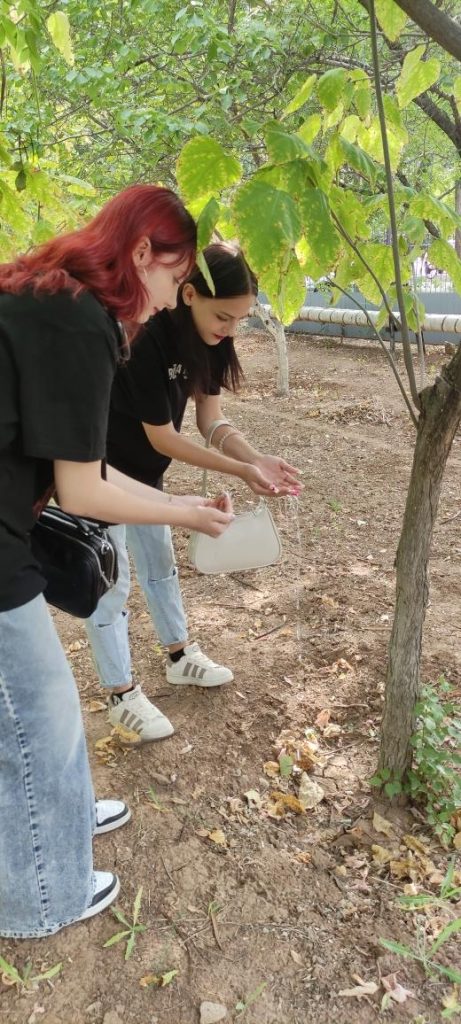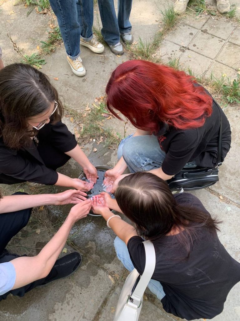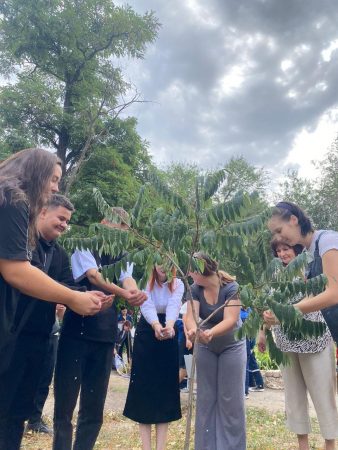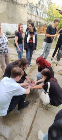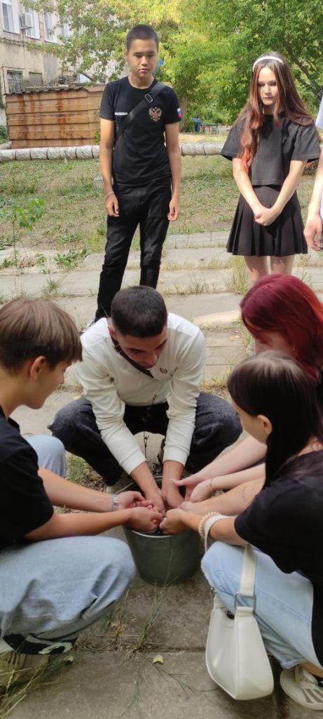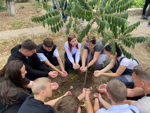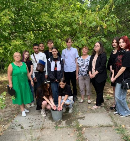 В акции приняли участие студенты 1-2 курсов всех трех корпусов ГБПОУ ВИТ. Набрав воду из емкости в ладони, они полили из рук деревья, находящиеся на территории учебных корпусов– таким образом символически поделились водой с теми, кого уже с нами нет.