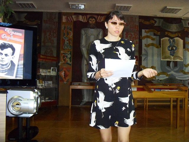 К мероприятию в читальном зале была оформлена книжная выставка «Память погибшим, наследство живым», которую наполнили исторические, художественные, биографические книги, связанные с эпохой Великой Отечественной войны, книги по творчеству Булата Окуджавы и Юлии Друниной.