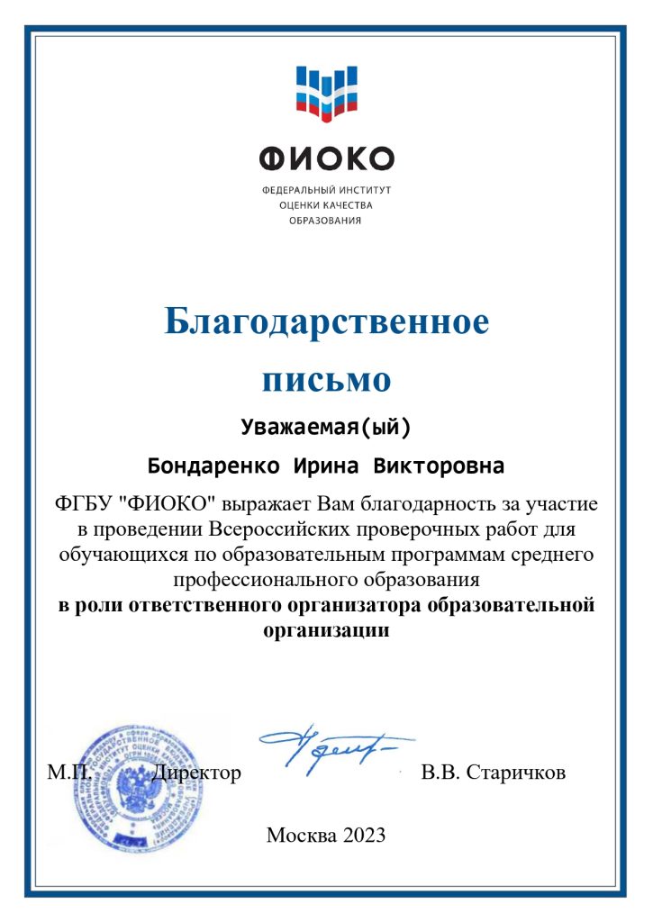 Всероссийские проверочные работы для обучающихся первых курсов и завершивших освоение основных общеобразовательных программ среднего общего образования проводились в ГБПОУ ВИТ с 15.09.2023 г. по 07.10.2023 г. с целью осуществления входного мониторинга качества образования и совершенствования преподавания учебных дисциплин и повышения качества образования.