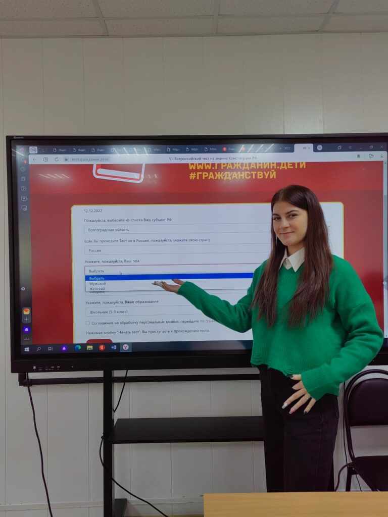 12 декабря 2022 года студенты и преподаватели техникума приняли участие в просветительской акции «Всероссийский тест на знание Конституции Российской Федерации», проводимой Всероссийским общественным движением «Гражданин». Мероприятие проходит ежегодно при поддержке крупных общественных организаций, федеральных законодательных и исполнительных органов власти, ярких представителей бизнеса, лидеров общественного мнения и средств массовой информации.