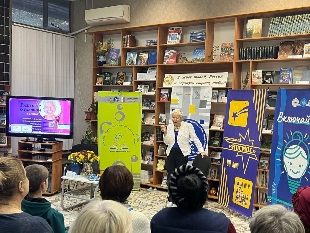 В небольшой уютной библиотеке №8 ребята пообщались с уникальной личностью, которая сочетает в себе страсть к спорту и любовь к поэзии. Эта женщина — не только чемпионка по легкой атлетике, но и талантливая поэтесса, чьи стихи находят отклик в сердцах многих.