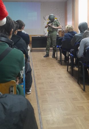 ✍ Сегодня, 2 декабря 2024г, в главном корпусе нашего техникума состоялась ставшая уже традиционной, встреча с нашим студентом, участником СВО. 📹 Андрей привез видеоприветствие от ребят, рассказал, как проходят служебные будни, о воинском братстве, о героической работе военкоров и показал фрагменты фильмов, отснятых погибшими журналистами.