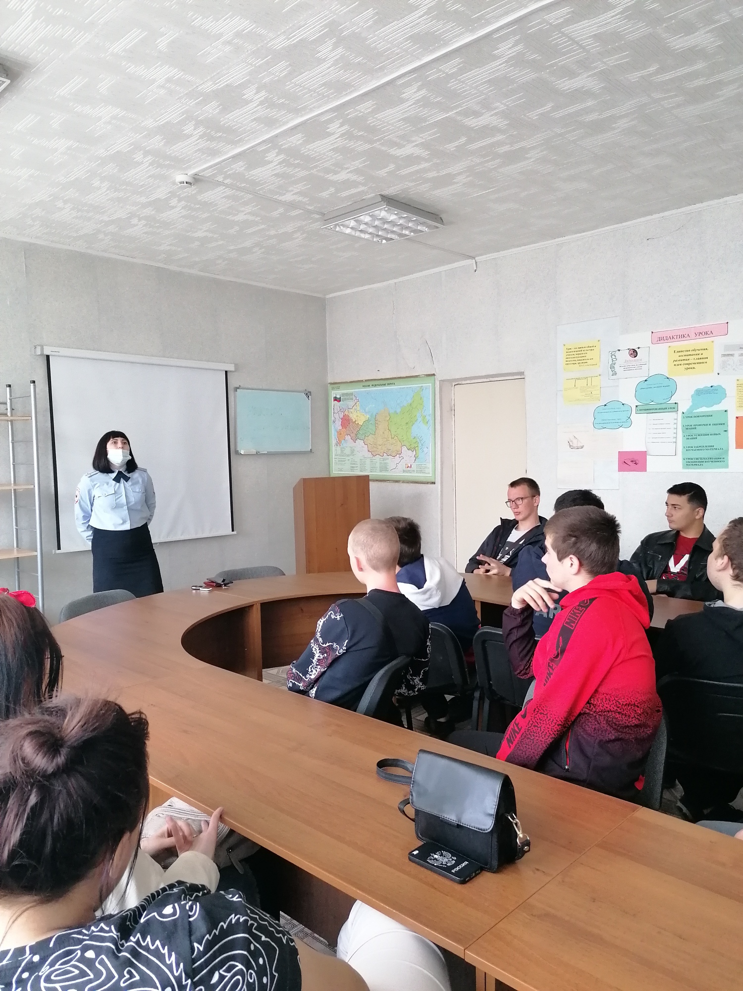 Цель данного мероприятия: профилактика преступности в молодежной среде. Освещались вопросы об административной и уголовной ответственности несовершеннолетних. Инспектора ПДН напомнии о нормах уголовного и административного права, об уголовных и административных правонарушениях, о видах наказаний, применяемых к несовершеннолетним, а также об особенностях и порядке привлечения несовершеннолетних к ответственности.