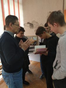 Перед ребятами выступил Смирнов Александр Александрович, краевед, поисковик- исследователь, составитель книги «Книга нашей памяти. Красноармейский район Волгограда». Он рассказал участникам встречи о малоизвестных фактах, касающихся В.И. Чуйкова, пообщался с обучающимися из гр. С-129 и их куратором Ивановым В.Д.