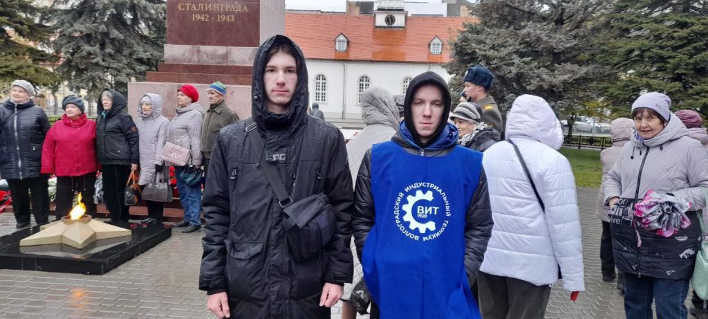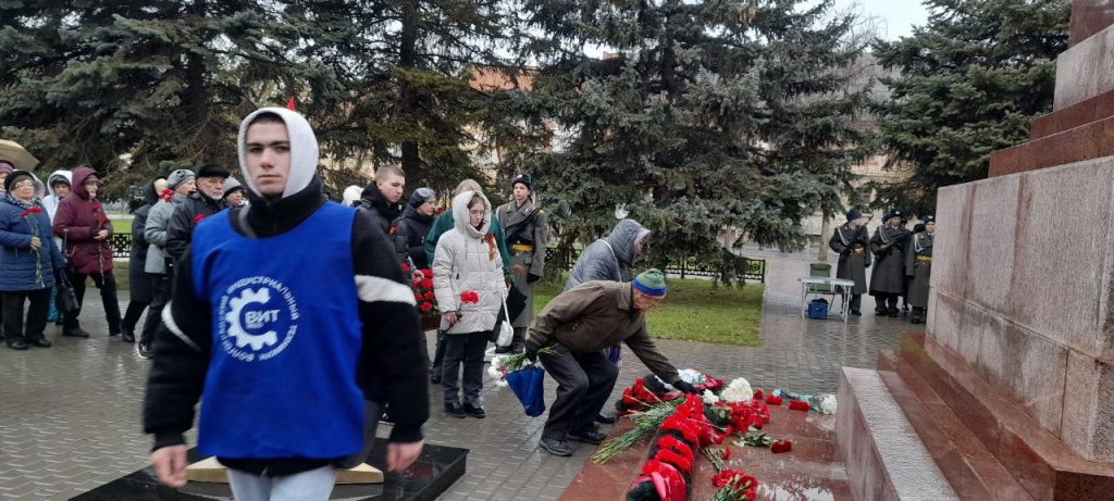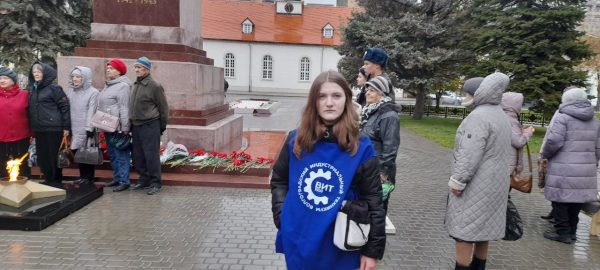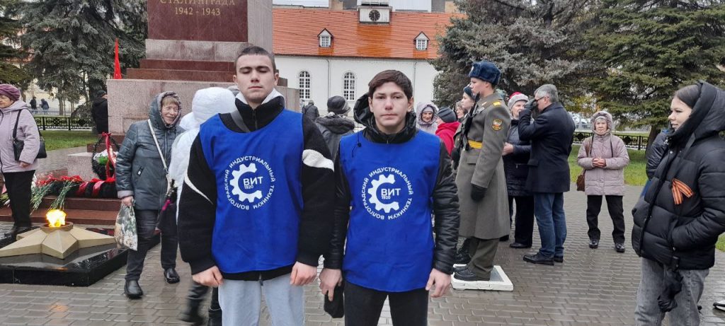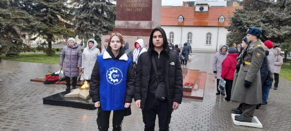 В торжественной акции возложения венков и цветов на Площади Свободы к мемориалу “Воинское захоронение – братская могила воинов 57-й и 64-й армии” приняли участие аминистрация, преподаватели и студенты ГБПОУ ВИТ.