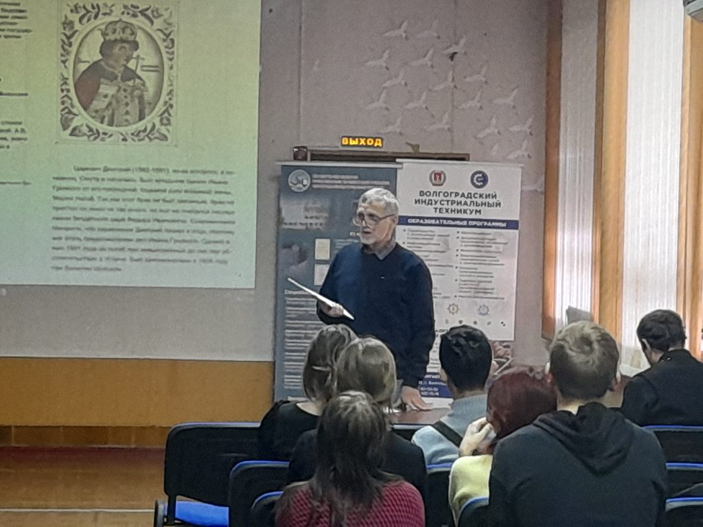 В рамках договора о сотрудничестве между Волгоградской епархией и ГБПОУ «Волгоградским индустриальным техникумом» при содействии советника директора по воспитанию Байцеровой Т.М., 6 ноября в ГБПОУ ВИТ для студентов первых куров прошел интерактивный урок, посвященный Дню народного единства.