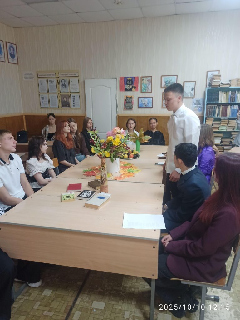 10 октября 2025 г. в главном корпусе ГБПОУ ВИТ состоялась творческая встреча, посвящённая замечательному русскому поэту Сергею Есенину, которому 3 октября 2025 года исполнилось 130 лет со дня рождения (отв. Фимина А.А., преподаватель литературы).