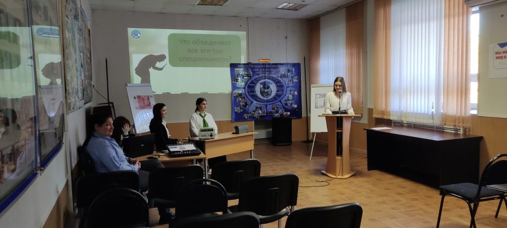 Преподаватели Петричук М.Г., Жук Я.И., Великанова Т.М. вместе со студентами второго и третьего курсов специальностей «Банковское дело» и «Право и организация социального обеспечения» подготовили и провели сценку по профориентационной работе для школьников на тему: «Мошенники в экономической сфере».