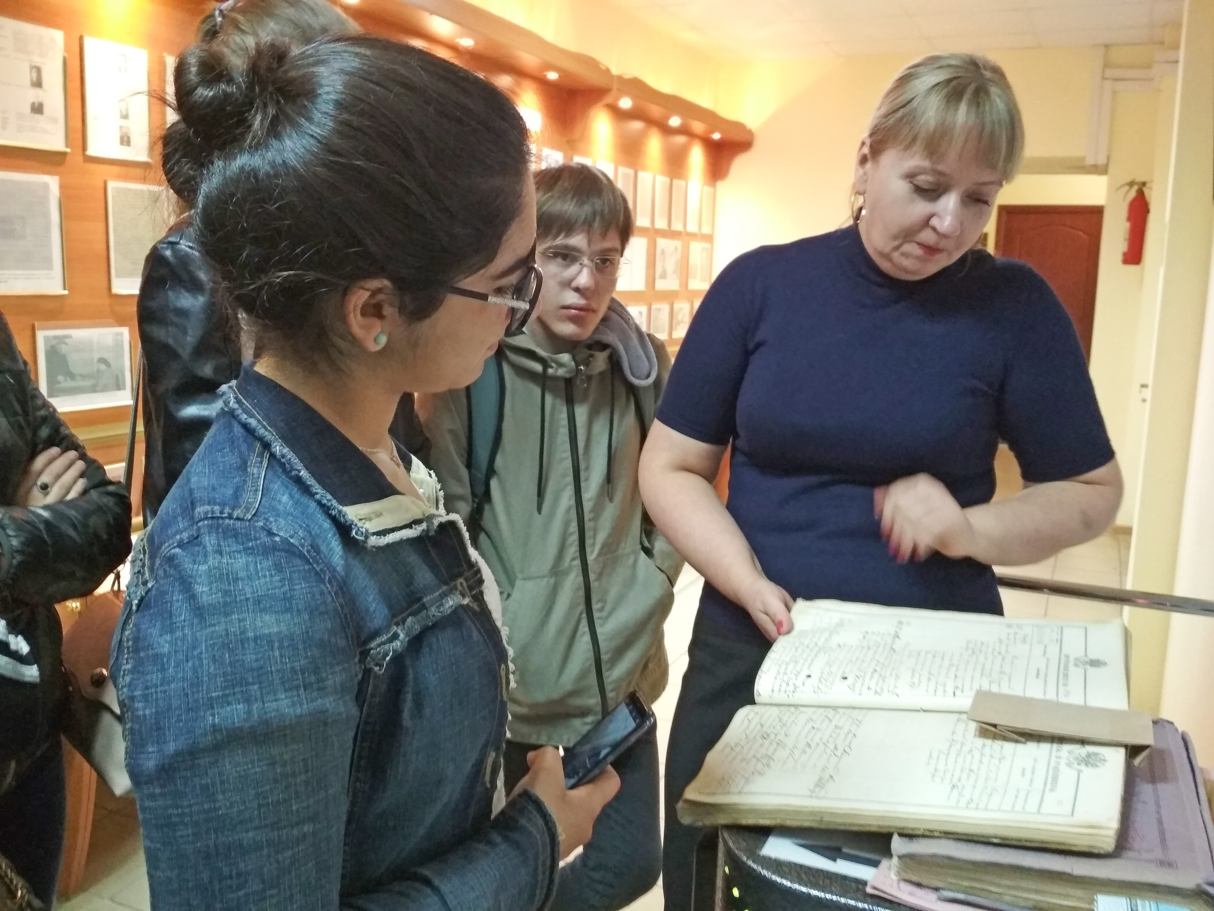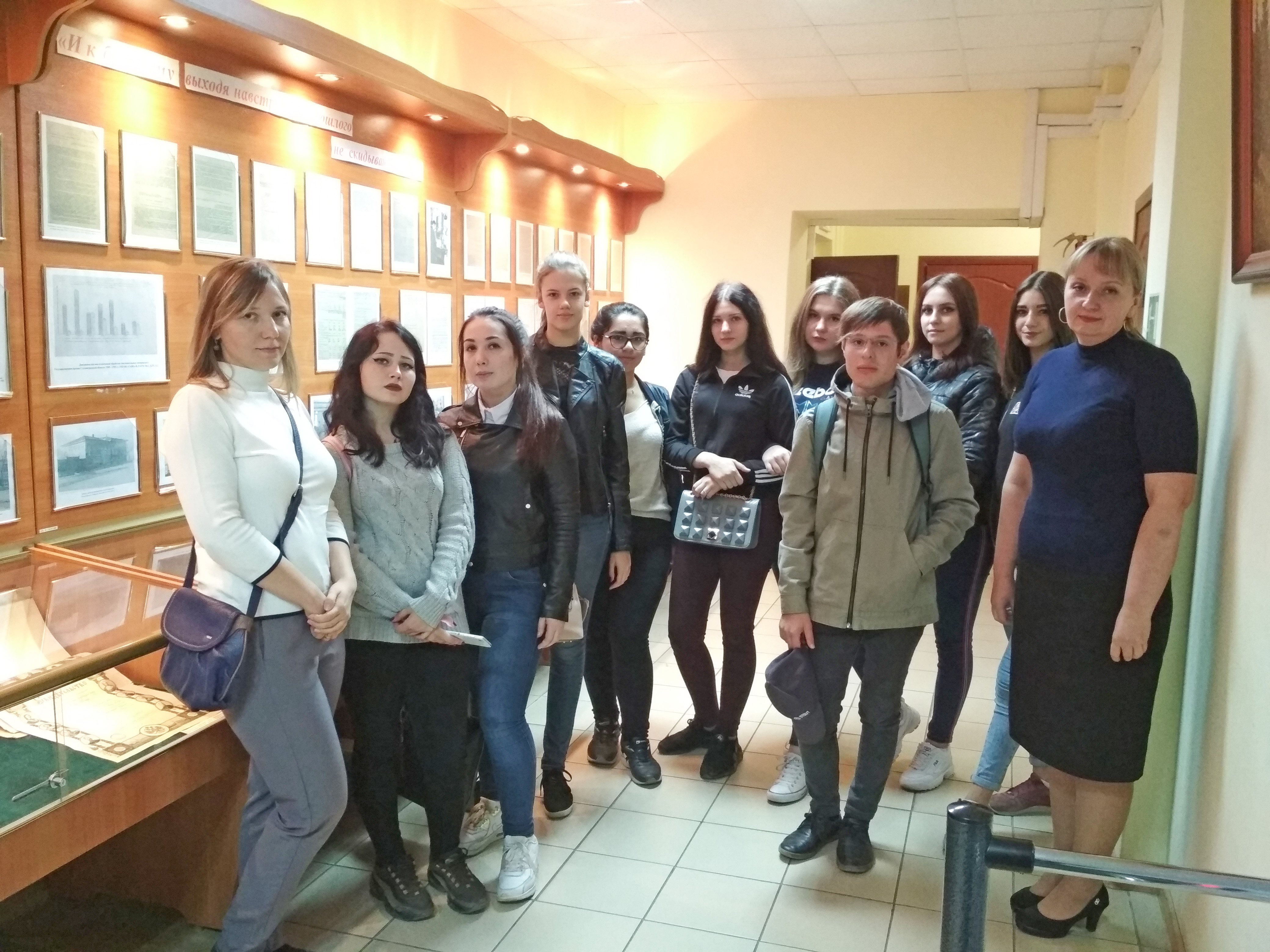 Экскурсию для студентов группы Д-118 провела начальник отдела использования документов архивного фонда и научно-исследовательской работы ГКУВО «ГАВО» Туголукова О. В. Она рассказала об истории создания архива, ознакомила с экспозицией выставки архивных документов под названием «И к будущему выходя навстречу, я прошлого не скидываю с плеч», посвященной 95-летию архивной службы Волгоградской области. На выставке были представлены редкие документы и фотоматериалы по истории развития архивной службы в нашем регионе, о работе ГАВО с 1923 г. по настоящее время. Студенты увидели наиболее интересные и ранние документы, датированные 1734 – 1829 гг., рукописные документы на изготовленной из тряпичного сырья бумаге, с сургучными печатями, документы церквей региона: летописные книги, метрики, брачные обыски и др.