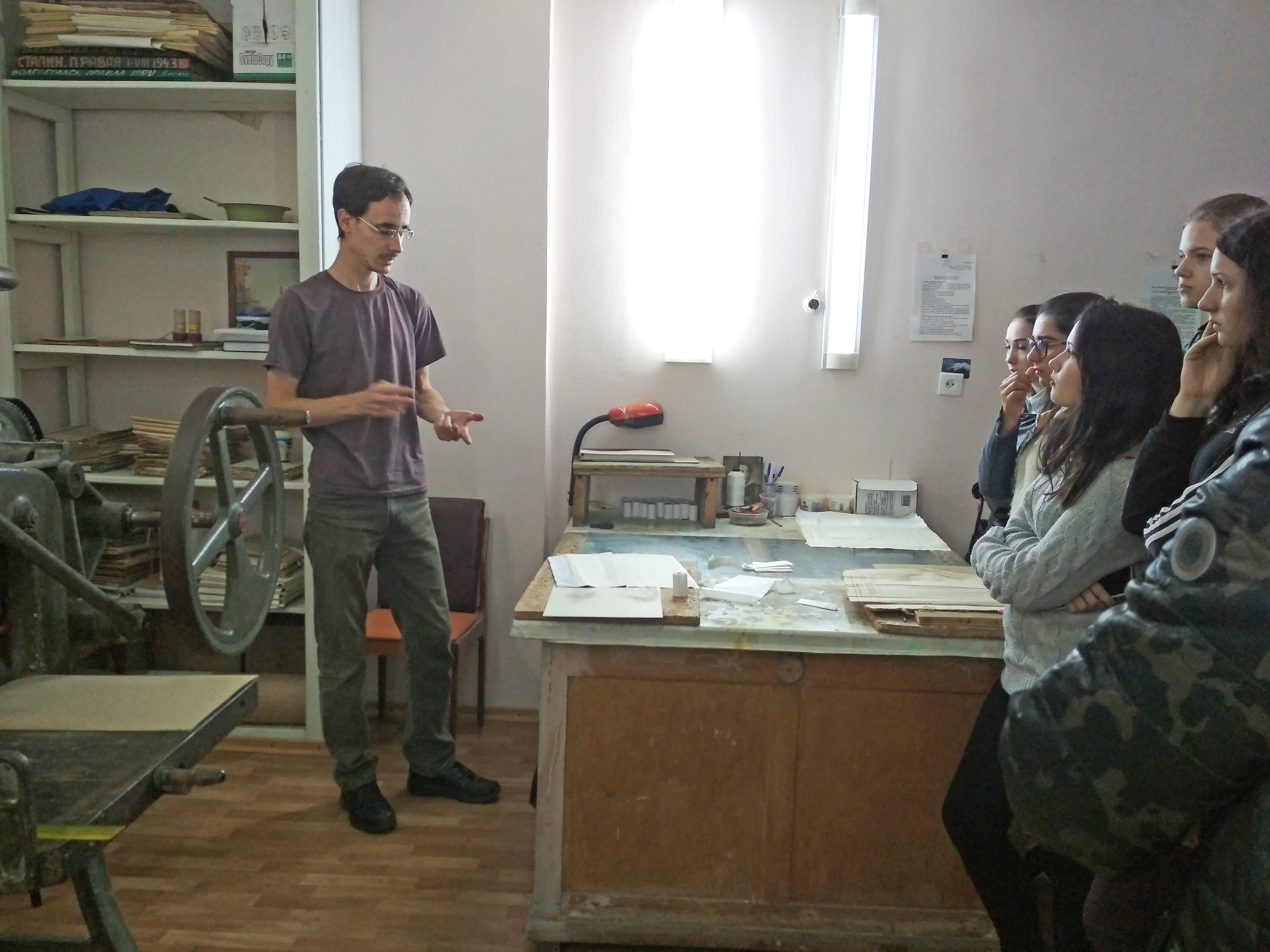 Первокурсники побывали в одном из хранилищ архива, узнали об условиях и режиме хранения документов. Затем студенты посетили отдел реставрации и страхового фонда архивных документов, ознакомились с особенностями ремонтных, консервационных и переплетных работ, специальным оборудованием для реставрации, а также перевода архивных документов в цифровой формат с целью создания электронных копий фонда пользования.