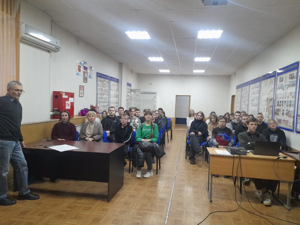 10 ноября 2025г в рамках классного часа в ГБПОУ «Волгоградский индустриальный техникум»  прошел интерактивный урок, посвященный Дню народного единства, который для студентов 2-х, 3-х, 4-х курсов техникума при содействии советника директора Байцеровой Т.М.  провел кандидат исторических наук, преподаватель истории и обществознания Синельников Сергей Петрович.