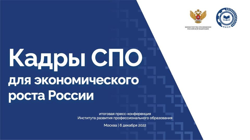 6 декабря в пресс-центре информационного агентства ТАСС состоится пресс-конференция «Кадры СПО – ресурс для экономического роста России». В ходе мероприятия будут подведены итоги развития системы среднего профессионального образования за год, в том числе федерального проекта «Молодые профессионалы» нацпроекта «Образование» и федеральной программы «Профессионалитет»