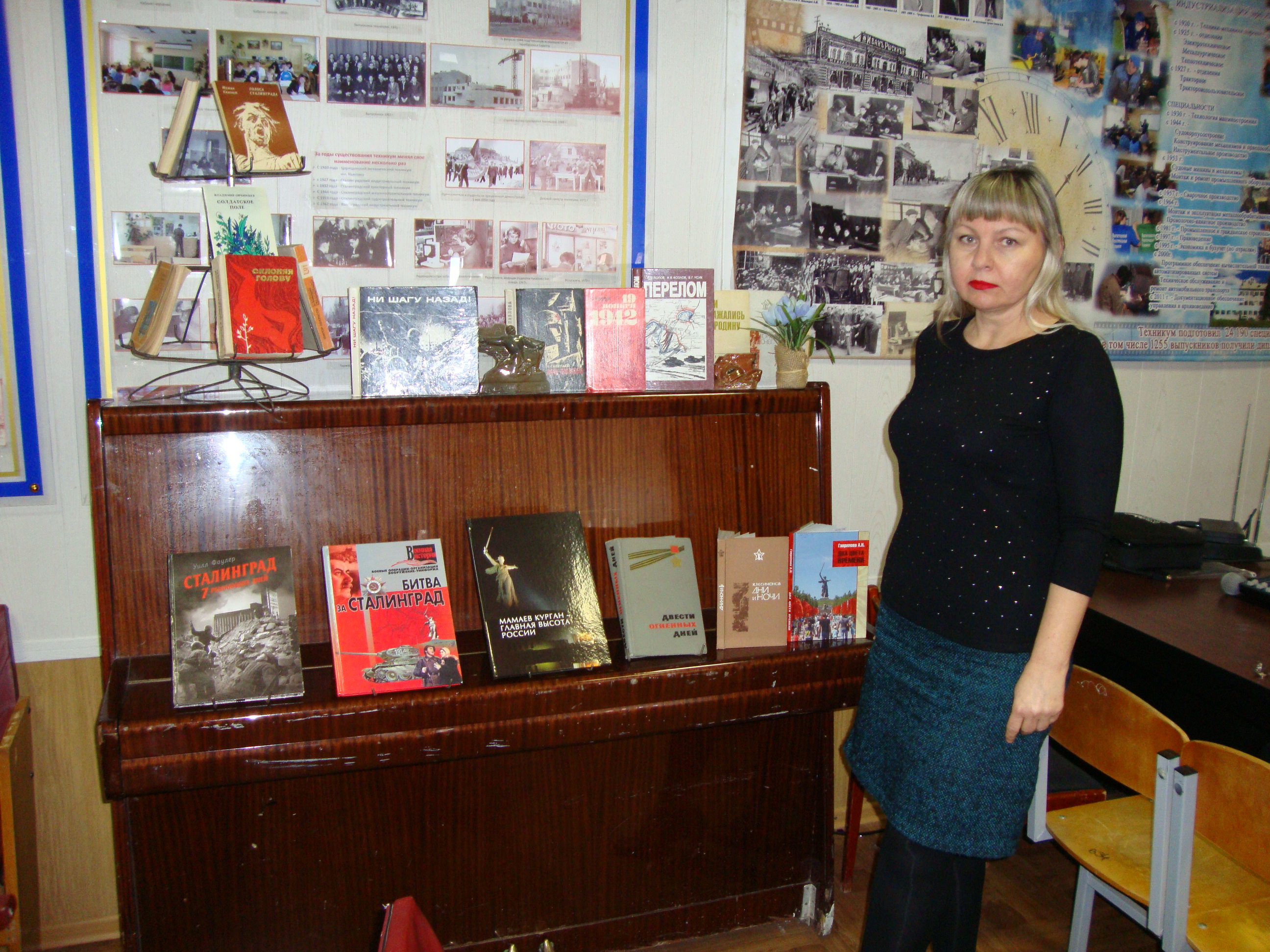 Звучали стихи известных поэтов, а также мало знакомые читателям лирические произведения, написанные солдатами и командирами непосредственно в период боевых действий под Сталинградом. Члены жюри (Семенюта Э.И., зав. библиотекой, Ященко Е.В., психолог, Морозова Н.А., Науменко Е.В., преподаватели русского языка) отметили искренность, эмоциональность, взволнованность всех чтецов: каждый из них по-своему постарался донести глубокие переживания участников великого сражения, трагизм грозных событий, благодарность защитникам города и гордость за героическое прошлое нашей страны. Семенюта Э.И. подготовила выставку художественных произведений о Сталинградском сражении.