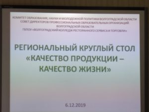 6 декабря 2019 года на базе ГБПОУ «Волгоградский колледж ресторанного сервиса и торговли» состоялось заседание круглого стола на тему: «Качество товаров – качество жизни».