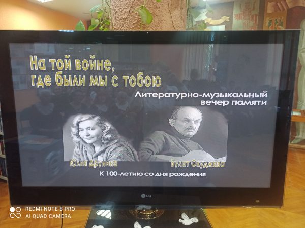 Военная тема занимает значительное место в стихах Друниной и Окуджавы, но, по их признанию, всё их творчество было направлено против войны, против её разрушительной силы. Сотрудники библиотеки № 18 подготовили биографический видеоряд, выставку книг поэтов и воспоминаний о них.