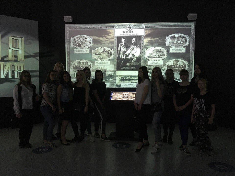 В рамках недели общеобразовательных дисциплин был проведён урок-экскурсия в интерактивном музее «Россия моя история». Занятие прошло 3 мая 2018 года в рамках дисциплины «История» с группой 1 курса специальности «Документационное обеспечение управления и архивоведение». В течение занятия студенты познакомились с двумя залами музея «Рюриковичи» и «Романовы».
