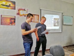 17.05.19 г. Савченко Н.Г. организовала мероприятие, посвящённое Дню славянской культуры и письменности «Слава всем, братья, славян просветители». Ведущие мероприятия Муртазаев Ильгам и Зимина Виктория рассказали об истории возникновения славянской письменности. Зуйков Максим и Лаптев Сергей инсценировали встречу Странника и Кирилла. Капинос Денис и Лунева Анна декламировали стихи и баллады о Кирилле и Мефодии. В викторине, посвященной истории родного языка, победителем стал Файзулин Ринат.