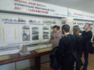 Внеаудиторное мероприятие «Экскурсия в музей строительства» студенты специальности в сопровождении преподавателя Чередниченко Е.В. посетили Музей строительства, который находится в корпусе 3 ГБПОУ «Волгоградский индустриальный техникум». В музее представлена история Строительно-монтажного треста «Волгоградтяжстрой» который был создан в 1952 году и выполнял работы по гражданскому и промышленному строительству в городе Волгограде. Так же в музее представлены экспонаты посвященные Великой отечественной войне 1941-1945 года.