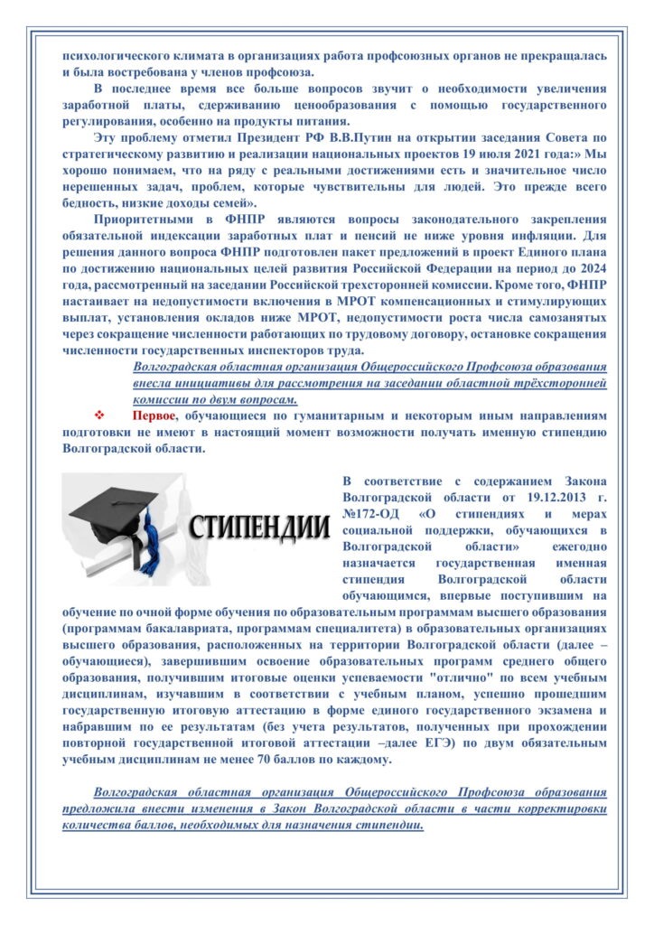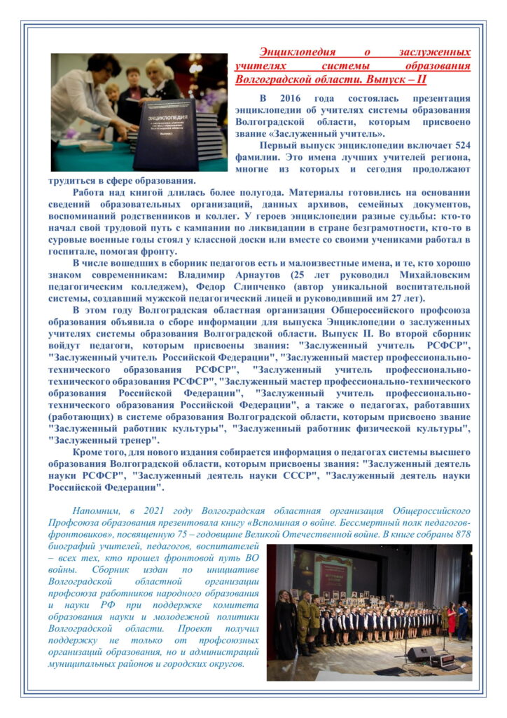 21 марта 2022 на базе ВолГТУ состоялась встреча педагогического коллектива с Областной организацией Общероссийского Профсоюза образования, которую представляли Лариса Львовна Кочергина, председатель Волгоградской и Наталья Александровна Крыжановская, заместитель председателя. Педагогический коллектив собрался вместе для обсуждения профсоюзных тем. Лариса Львовна подробно рассказала о деятельности обкома, ответила на все интересующие вопросы.