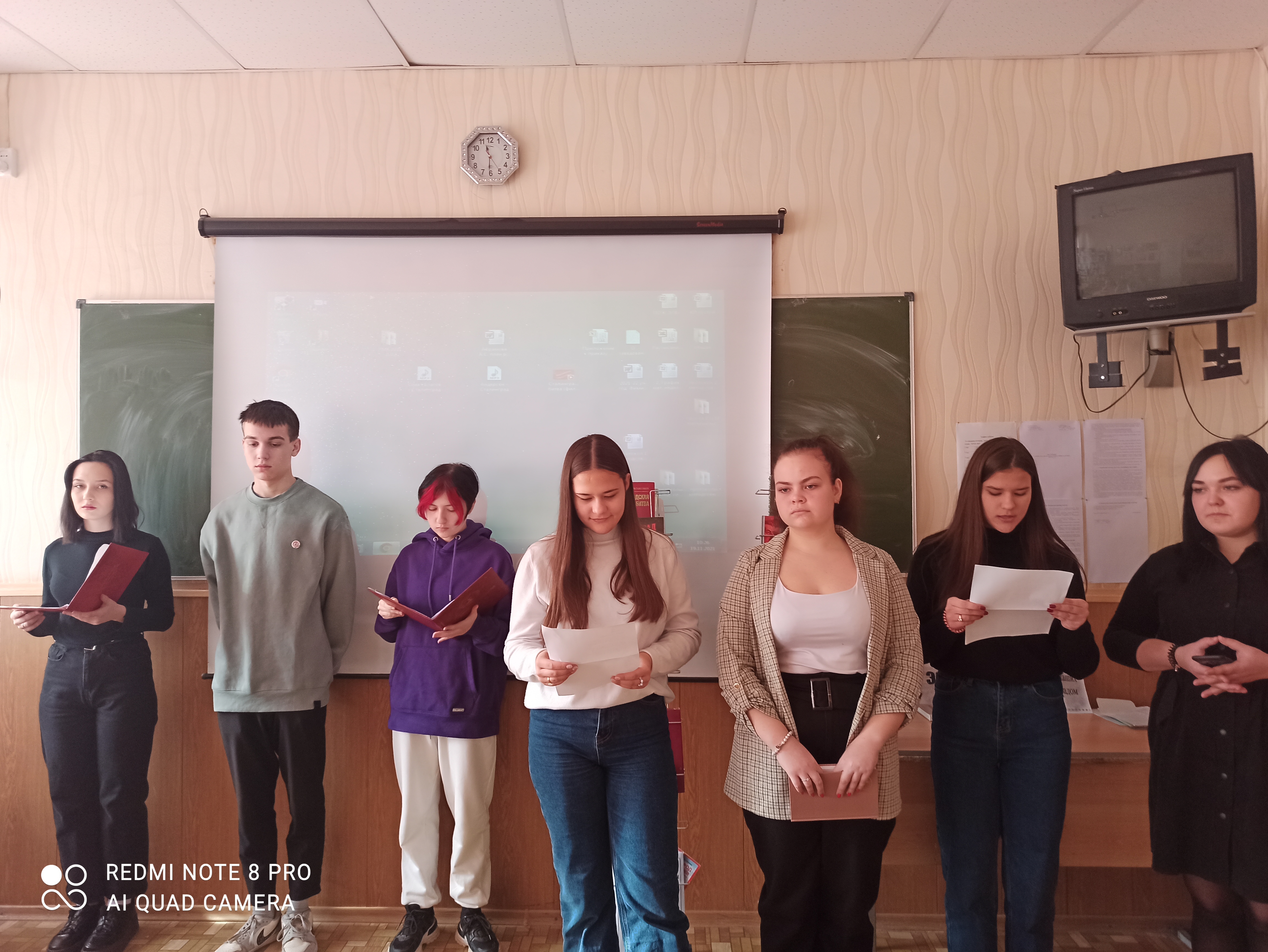 Немало художественных произведений было написано о ратном и трудовом подвиге сталинградцев. В память об этой дате был проведён поэтический час в группах ПСО-111, Д-111. (ответственная Фимина А.А., преподаватель русского языка и литературы). Обучающиеся подобрали и прочитали замечательные стихи на военную тему: