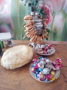 Мероприятие закончилось традиционным чаепитием с блинами, баранками и пряниками.