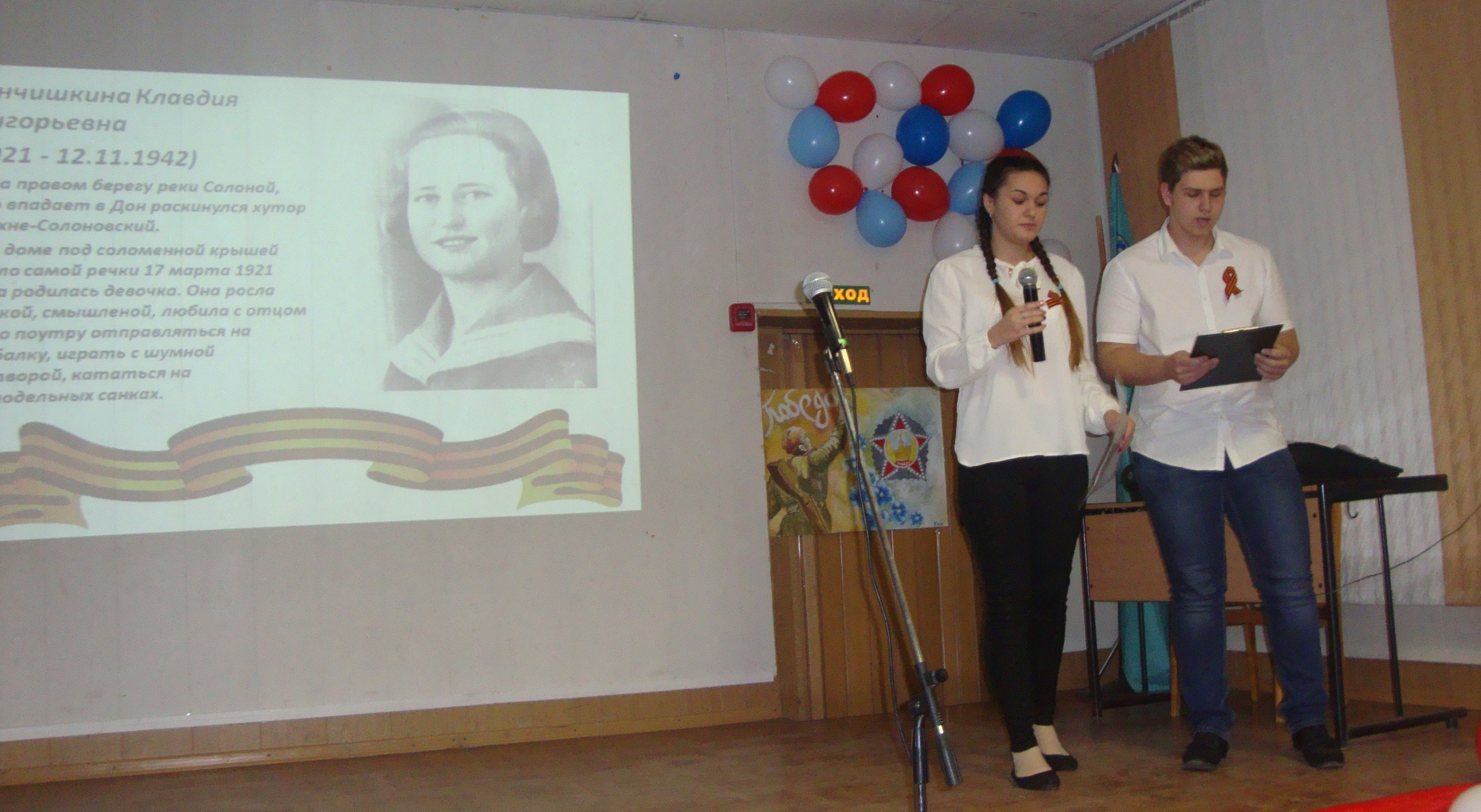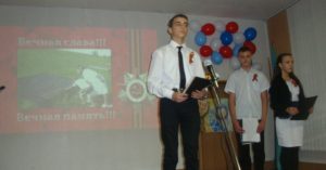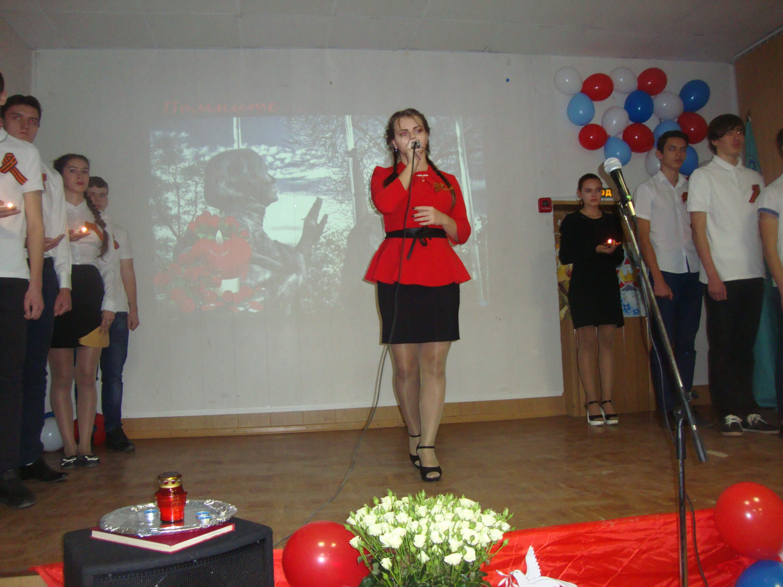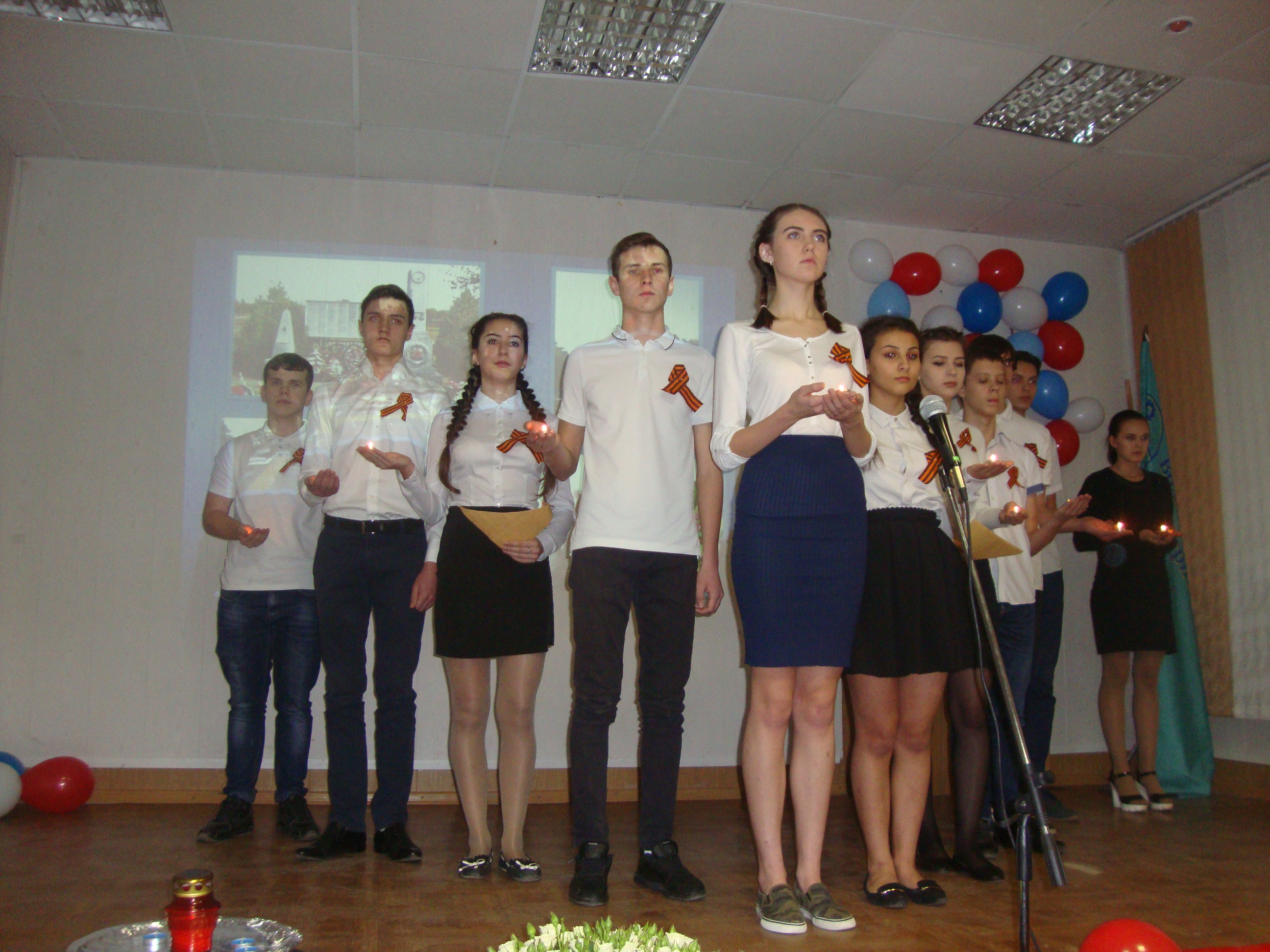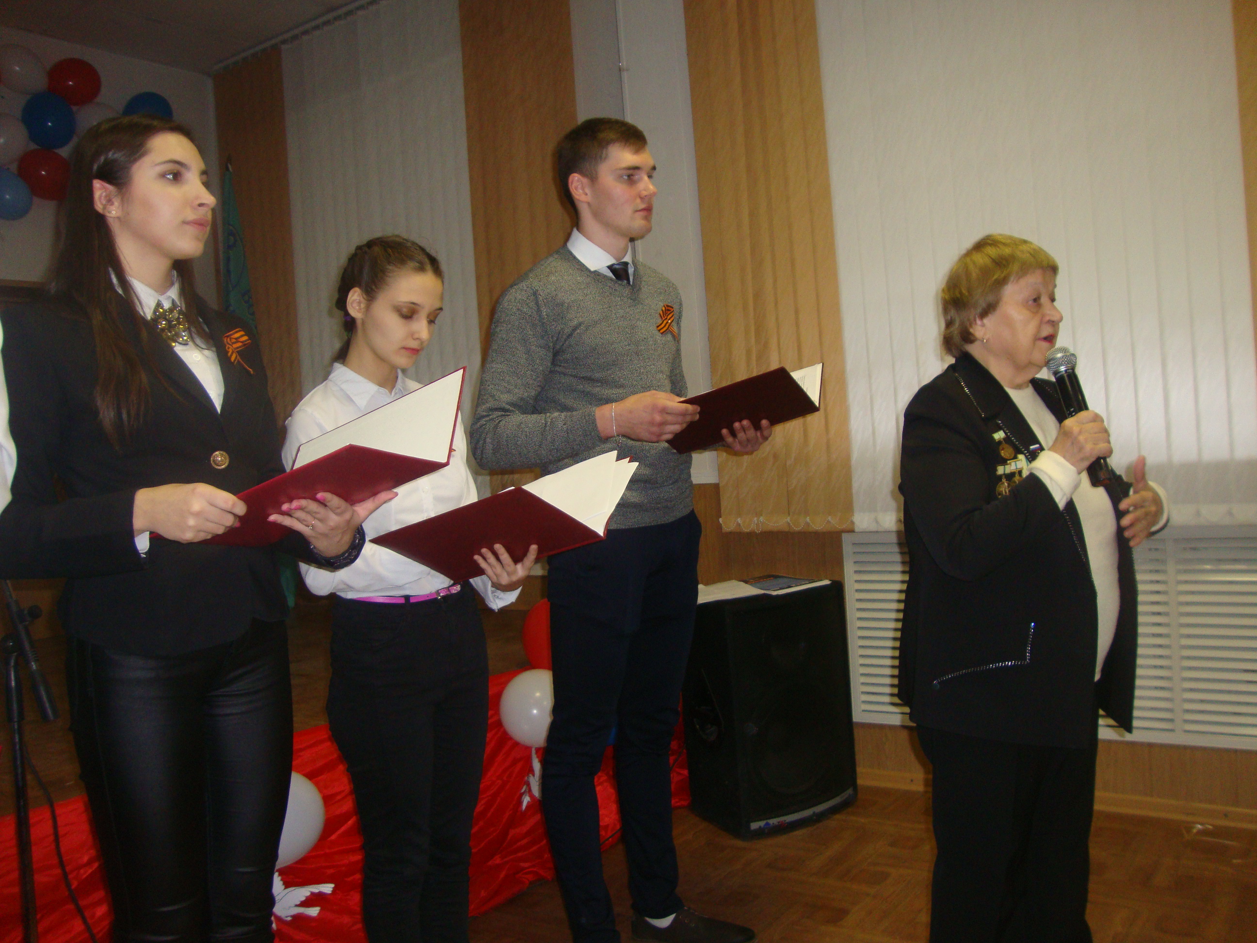 Большую активность проявили члены литературного клуба (руководитель Фимина А.А.), которые представили литературно – музыкальную композицию «И пока огонь не гаснет, память наша будет жить…». Сертификатами были отмечены Бобышева Татьяна, гр.П-1-17,Ефремов Артём, гр.П-1-17,Сафронов Дмитрий, гр. П-1-17,Лалаян Аделина, Б-1-17, Захаров Дмитрий, гр.ТМ-1-17, Муравьёв Даниил, гр.ТМ-1-17,Скачкова Полина, гр. Д-1-17, Курдюбова Юлия, гр. Д-1-17, Горлова Анастасия, гр.Д-1-17, Шевченко Анастасия, гр.Д-1-15, Шамаев Максим, гр.П-1-17.Планчак Рада, гр.Д-1-17. Стихи и песни в их исполнении особенно тронули всех собравшихся.