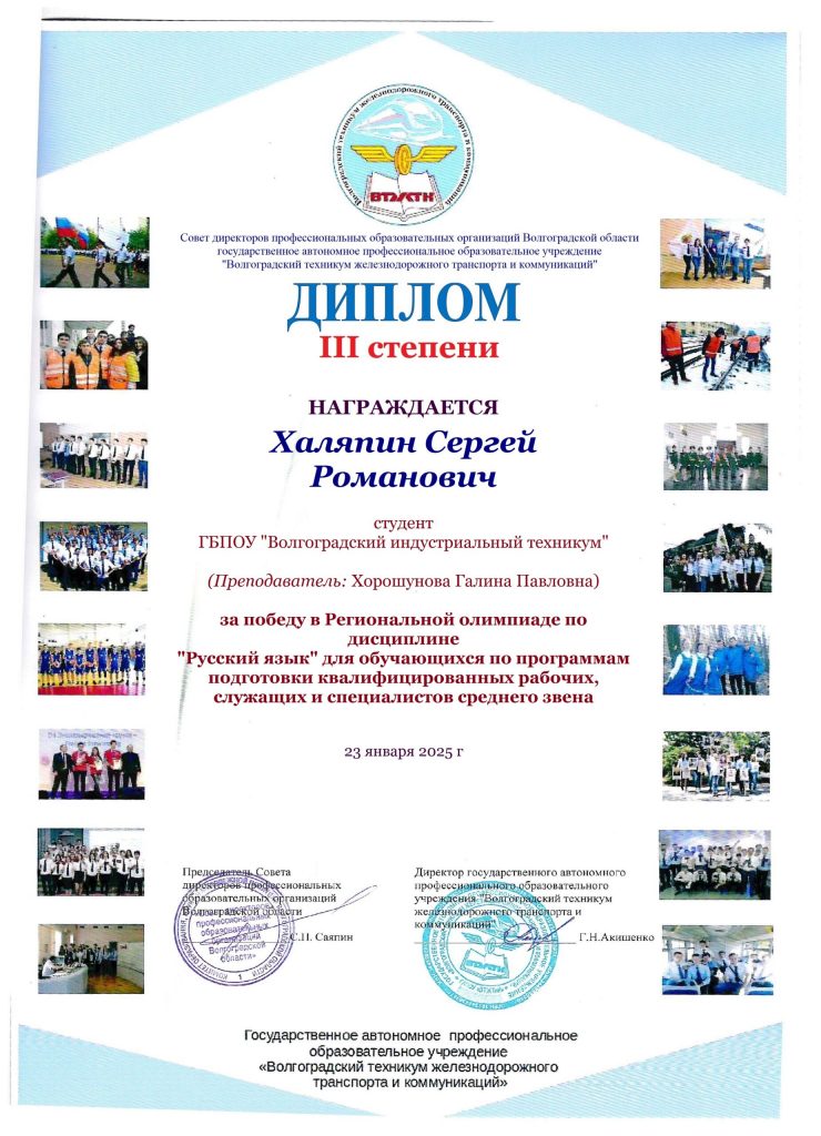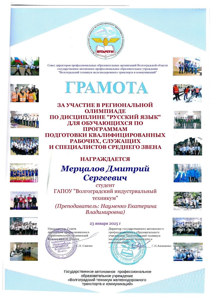 23 января 2025 года на базе ГАПОУ «Волгоградский техникум железнодорожного транспорта и коммуникаций» состоялась региональная олимпиада по дисциплине «Русский язык» для студентов ПОО, обучающихся по программам подготовки квалифицированных рабочих, служащих и специалистов среднего звена.
