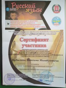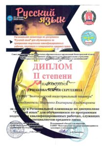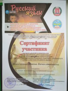Мария Ермакова стала призёром олимпиады, награждена дипломом II степени. Иван Пасечник и Максим Будылин показали также высокие результаты (4 и 6 место соответственно) и были отмечены сертификатами участников. Поздравляем ребят и желаем им успехов в дальнейшем изучении русского языка!!!