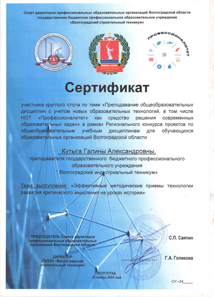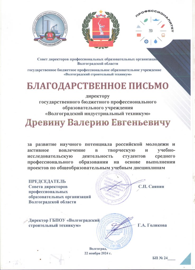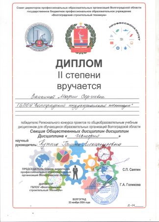 22 ноября 2024 года состоялся региональный конкурс студенческих проектов по общеобразовательным дисциплинам, который проводился на базе ГБПОУ «Волгоградский строительный техникум».
