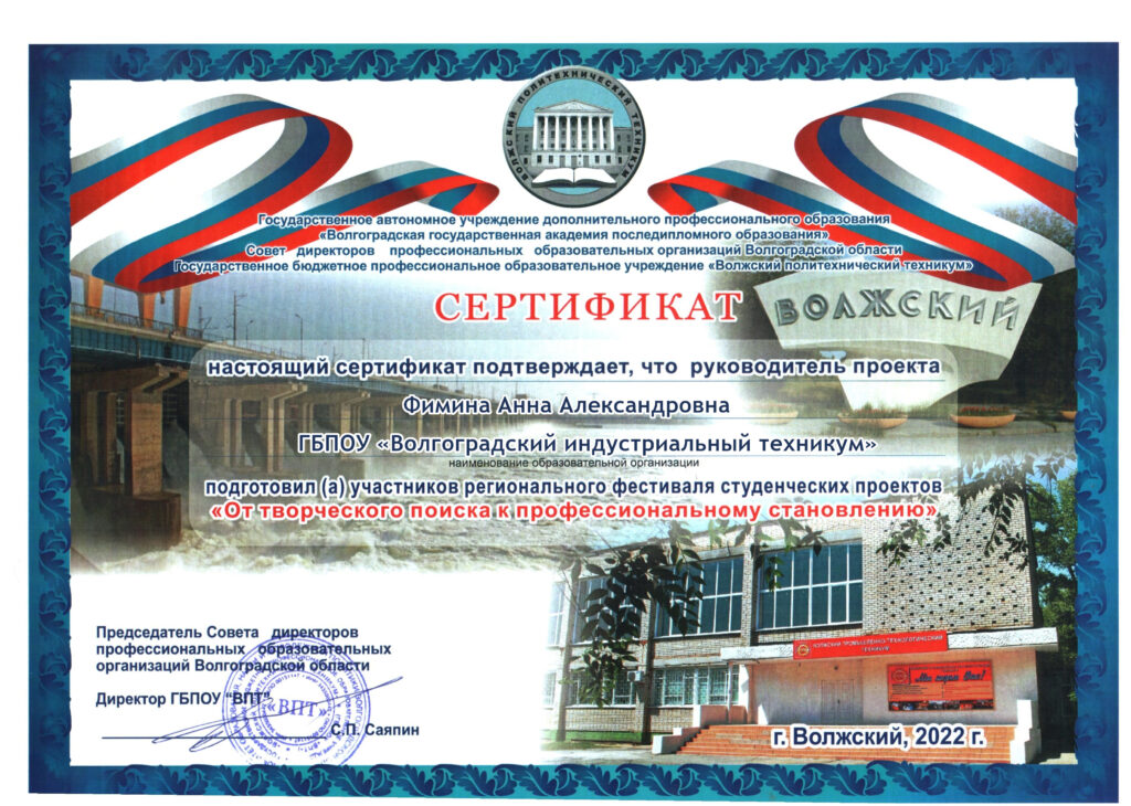 15 апреля 2022 года на базе Волжского политехнического техникума состоялся Региональный фестиваль студенческих проектов «От творческого поиска к профессиональному становлению».