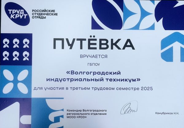 06 июня 2025г. в ГБПОУ “Волгоградский индустриальный техникум” завершилось обучение в рамках грантов на бесплатное профессиональное обучение участников студенческих отрядов в соответствии с Постановлением Правительства РФ от 09.06.2021 N 876 «Об утверждении Правил предоставления гранта в форме субсидии из федерального бюджета на финансовое обеспечение реализации мероприятий по предоставлению грантов на обучение по основным программам профессионального обучения на бесплатной основе участников студенческих отрядов по профессиям рабочих, должностям служащих, необходимым для осуществления трудовой деятельности в составе таких отрядов».