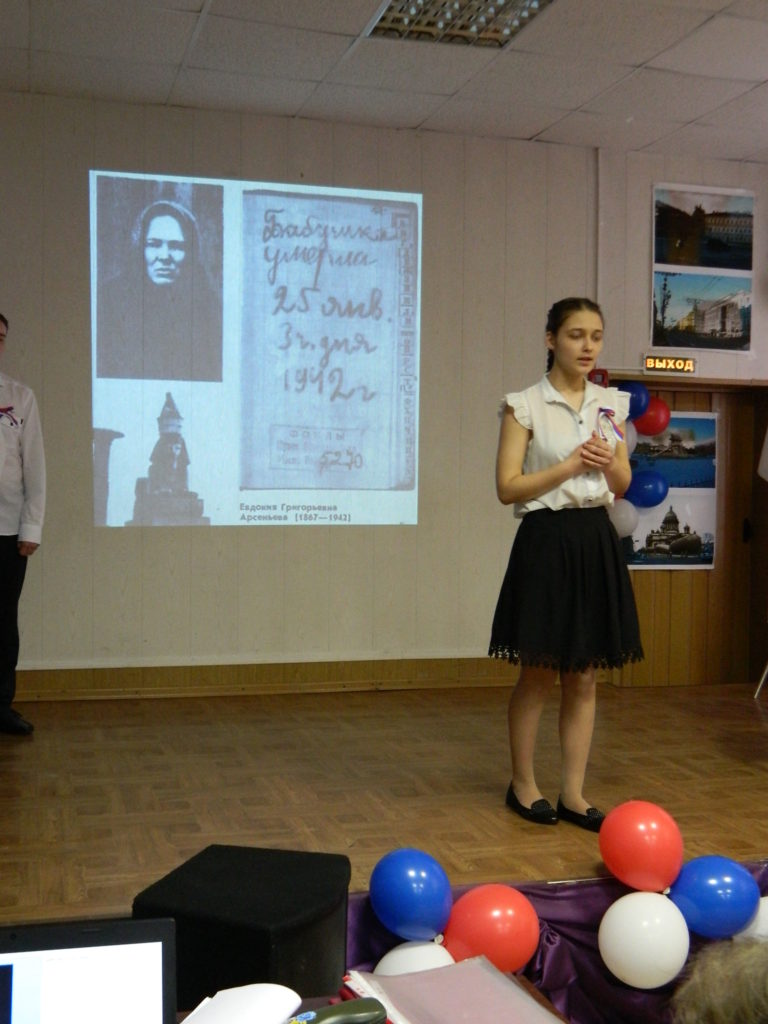 Каждый день жизни в блокадном Ленинграде – это подвиг. Подвиг, который должен остаться в памяти грядущих поколений. Со сцены звучали стихи и песни о мужестве блокадников. Их были тысячи, а выжили – единицы. Они – Победители, которые и через столетия останутся ярким символом несгибаемой стойкости!