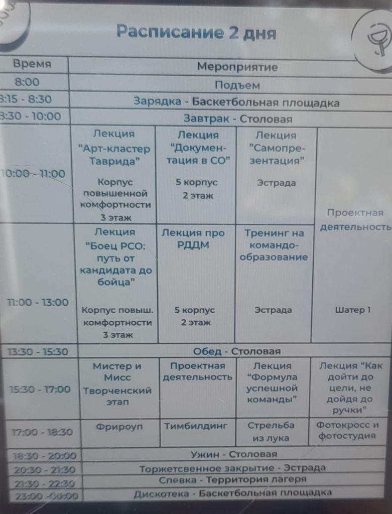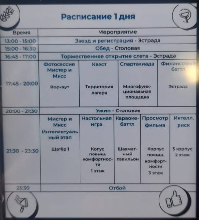 В течение двух дней участники слета были погружены в насыщенную программу мероприятий: участвовали в интересных дискуссиях с привлечением профессиональных спикеров, слушали лекции по РДДМ; участвовали в спартакиадах, квестах и многом другом.