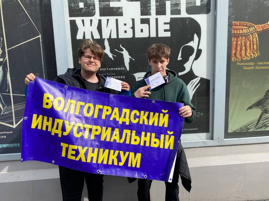 Дети участников СВО в ГБПОУ “Волгоградский индустриальный техникум” получили персональные приглашения в Волгоградский Молодежный театр на спектакль с патриотической направленностью “Вечно живые”, который состоялся 12 марта 2025г.