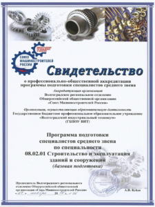 Специальность 08.02.01 СТРОИТЕЛЬСТВО И ЭКСПЛУАТАЦИЯ ЗДАНИЙ И СООРУЖЕНИЙ