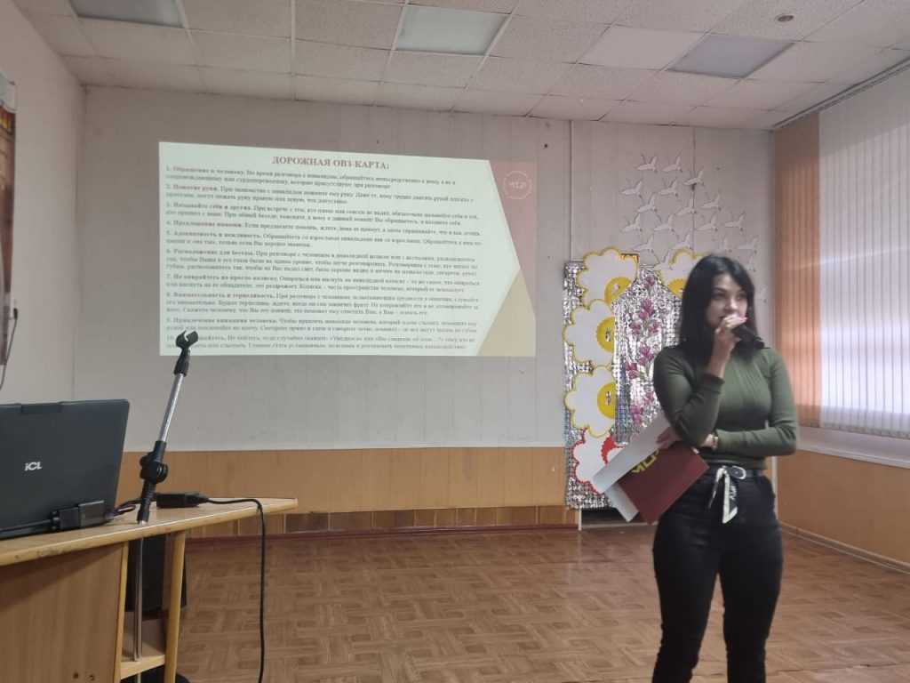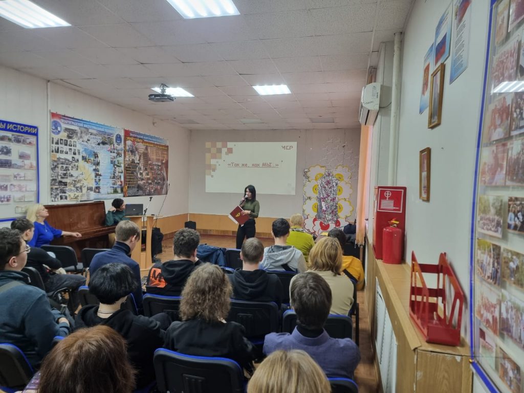 Цель проекта : помочь научить молодых людей правильному общению инвалидами. Тема проекта очень актуальна еще и потому, что в настоящее время многие ребята, вернувшиеся с СВО и получив ограничения по здоровью , сталкиваются с подобными проблемами. А так же представители МСР рассказали о председателе Местного отделения Социалистической партии «Справедливая Россия – за правду» Виталии Кравцове – юристе, журналисте, музыканте, блогере , и его деятельности по защите прав инвалидов. Наши студенты с большим вниманием и интересом поучаствовали в обсуждении данного проекта и договорились о дальнейшем сотрудничестве с МСР.