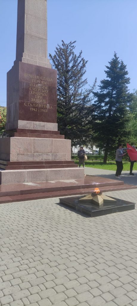 У Обелиска был зажжён Вечный огонь в память о павших героях, а охранял покой погибших Почетный караул от патриотического центра “Гвардеец”. На митинге выступили руководители Красноармейского района, представители образовательных учреждений исполнили песни военных лет и трогательный вальс. Среди приглашенных были ветераны ВОв, жители осажденного Сталинграда, труженики тыла , представители промышленных предприятий и образовательных учреждений района. В завершении митинга присутствующие почтили память минутой молчания и возложили цветы и венки к подножию братской могилы