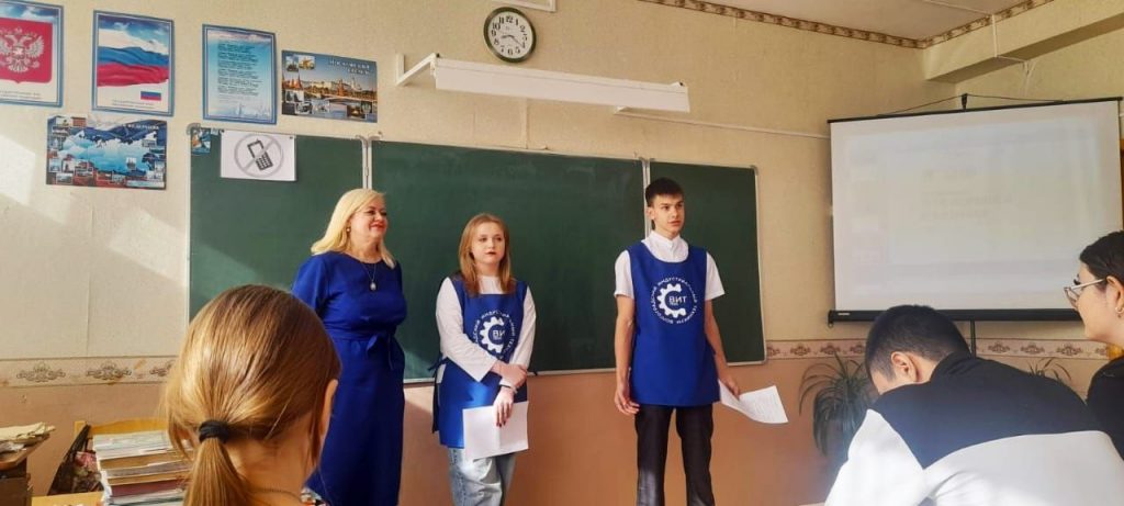 Ребята рассказали школьникам 9-х классов об актуальном состоянии развития системы СПО, раскрыли перспективы обучения в колледжах и техникумах, реализующих образовательные программы федерального проекта “Профессионалитет”, поделились личным опытом обучения на примере нашего техникума и представили специальности , по которым осуществляется обучение в Волгоградском индустриальном техникуме. А ещё пригласили выпускников на День открытых дней 12 апреля 2025 года.