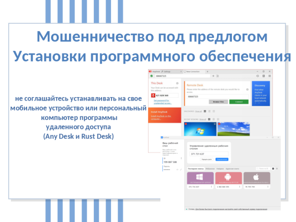Важно: мошенники могут просить установить сторонние приложения для удаленного доступа через мобильный телефон (Any Desk и Rust Desk), убедить Вас отправиться в ближайший банкомат и перевести денежные средства со всех банковских карт на «безопасные счета». Угрозы, запугивание, осуществление морального давления – это неотъемлемые инструмента преступника.