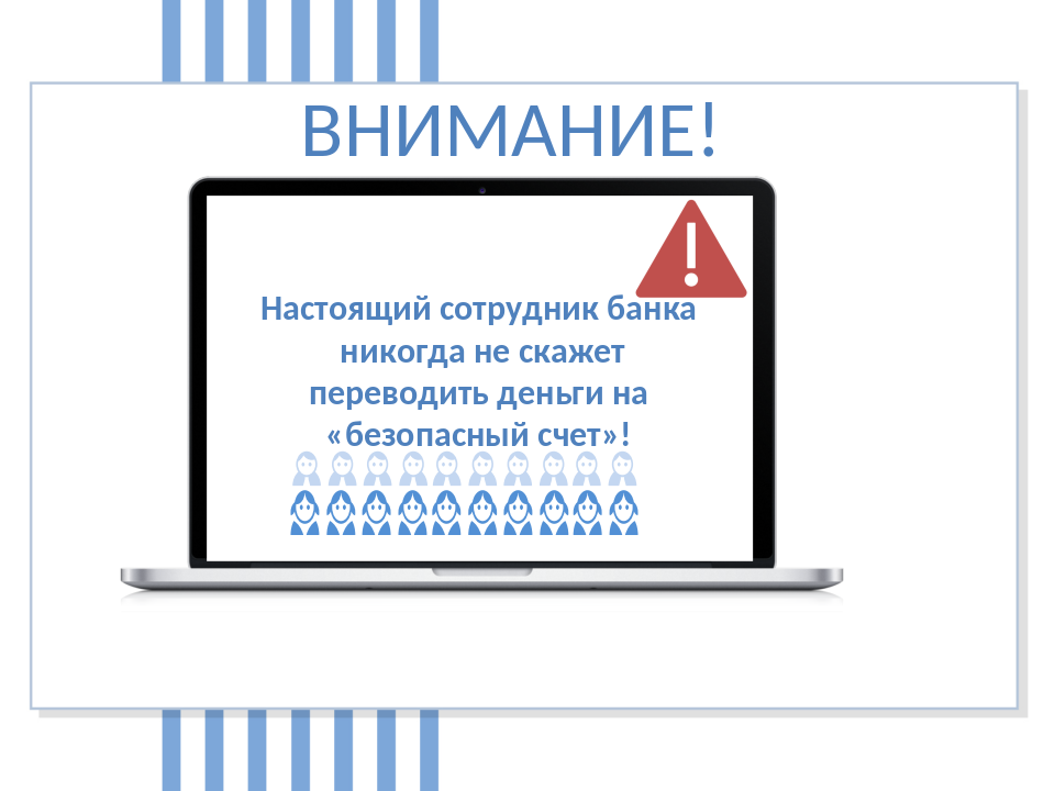 Внимание: Настоящий сотрудник банка никогда не обратится к Вам с подобной просьбой! Не сообщайте свои личные данные, данные банковских карт, пин-код, трехзначный код на обороте банковской карты, поступившие пароли по смс-сообщению и т.д. Не соглашайтесь устанавливать на свое мобильное устройство или персональный компьютер программы удаленного доступа (Any Desk и Rust Desk). Срочно прервите разговор и позвоните на номер горячей линии, указанный на обороте Вашей банковской карты для уточнения информации. В мобильном приложении вашего банка вы можете сообщить об абонентских номерах, с использованием которых пытались совершить мошенничество в отношении Вас, тем самым вы предотвратите других людей от возможного совершения мошенничества.