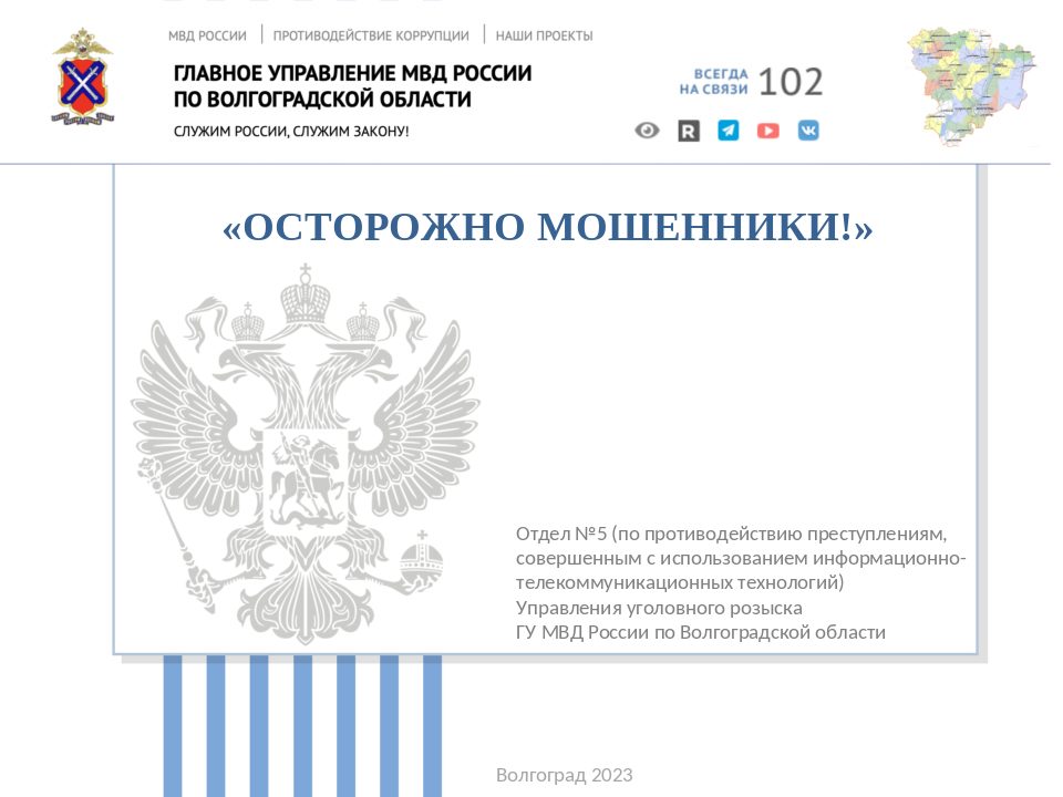 В настоящее время на территории Волгоградской области продолжают регистрироваться случаи краж денежных средств с банковских счетов и мошенничеств, совершенных с использованием средств связи и сети Интернет. Каждое 3-е преступление на территории региона совершается с использованием информационно-телекоммуникационных технологий. Чтобы не стать жертвой мошенников, а также не лишиться своих денежных средств, обратите внимание на основные способы и схемы совершения рассматриваемого вида преступлений. Обратите внимание, что мошенники модернизируют, усовершенствуют и видоизменяют данные способы, для того, чтоб ввести Вас в заблуждение и завладеть денежными средствами. Отнеситесь к приведенному материалу ниже с особым вниманием. Поделитесь информацией со своими близкими и родственниками. Не дайте себя обмануть.