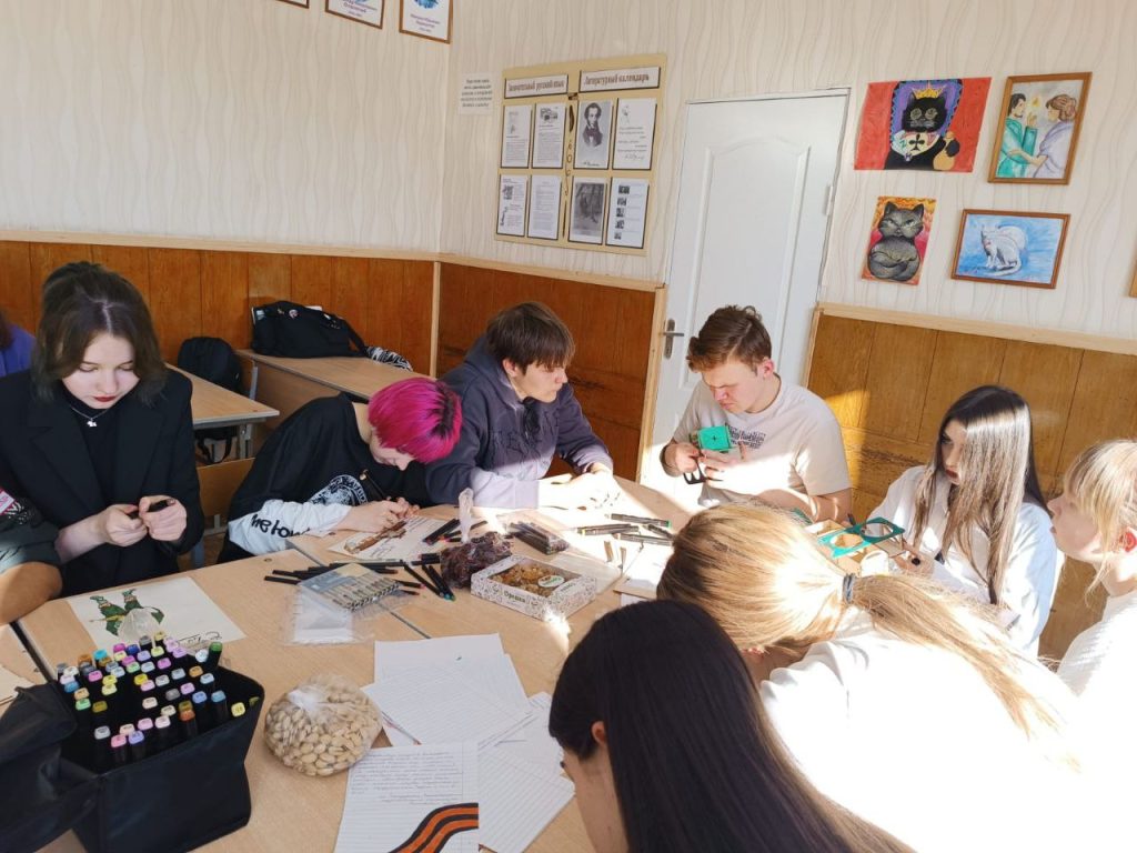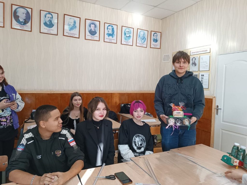 На уроке ребята сделали своими руками для акции письма, открытки, подарки из дерева,вложили угощения.