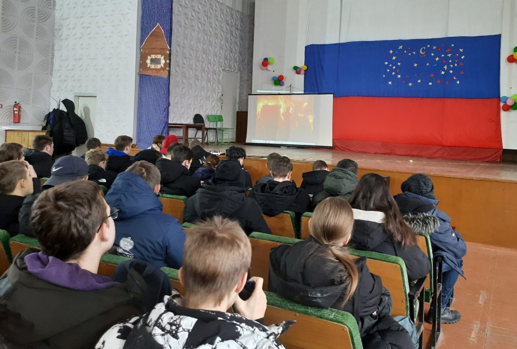 Студенты посмотрели фрагменты кинохроники битвы на Волге с информацией о ходе операции «Уран», о силе сторон, о потерях и победе в Сталинграде.
