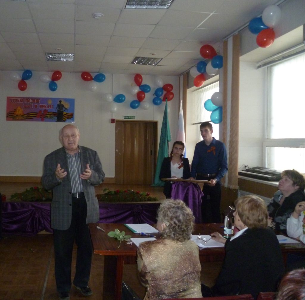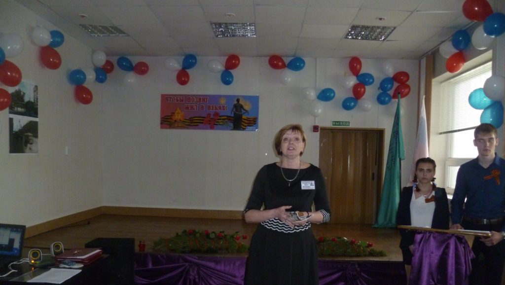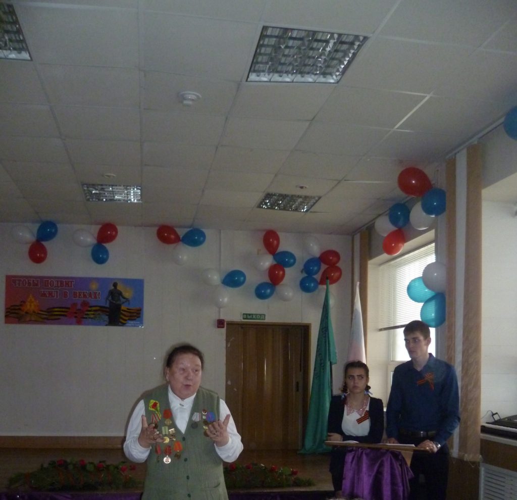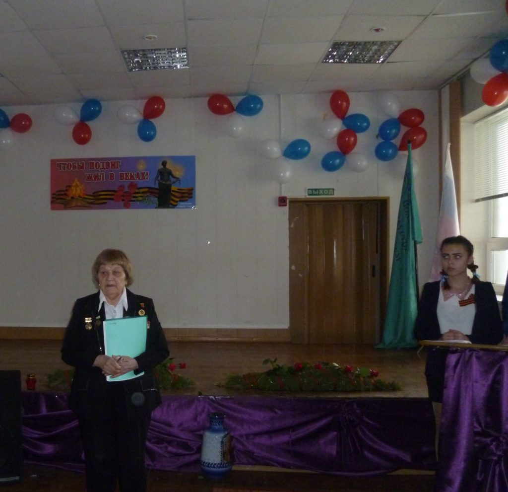 От лица администрации к собравшимся обратилась Бондаренко И.В., заместитель директора по учебной работе. Она отметила, что такие встречи играют большую роль в воспитании духовно – нравственных качеств будущих специалистов, поделилась своими мыслями о величии подвига русского народа в Великой Отечественной войне.
