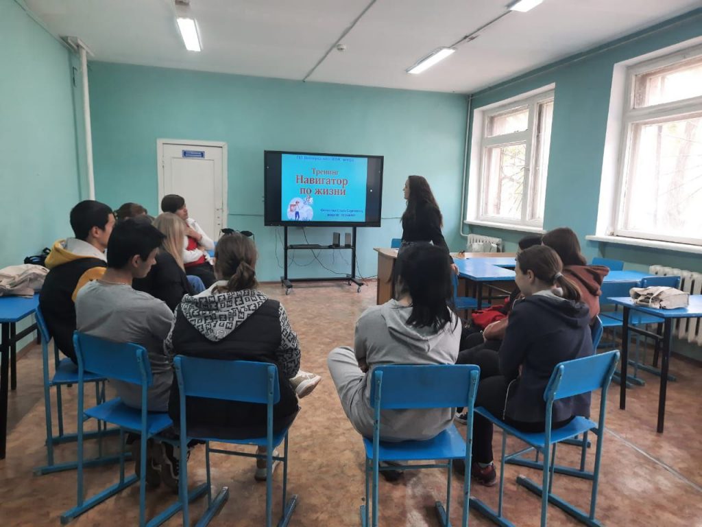 16.05.2024г в ГБПОУ ВИТ прошел тренинг “Навигатор по жизни”. Целью данной встречи было развитие ценностно- смысловой сферы подростков, а также стратегии выхода из конфликтных ситуаций. Провела тренинг педагог-психолог ГБУ ” Волгоградского ППСМ -центра” Фетисова Ольга Сергеевна