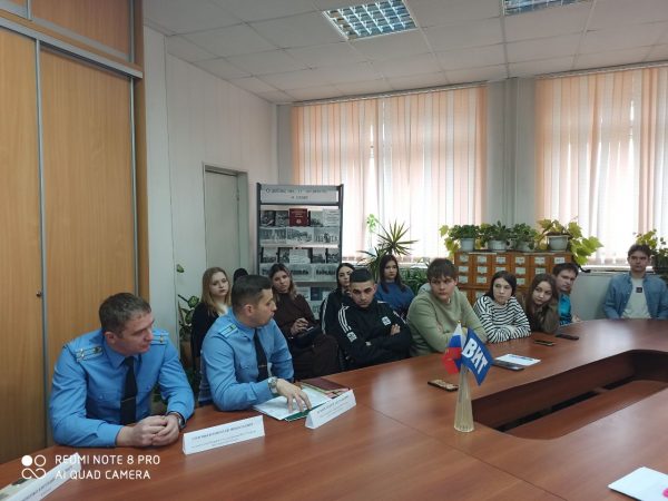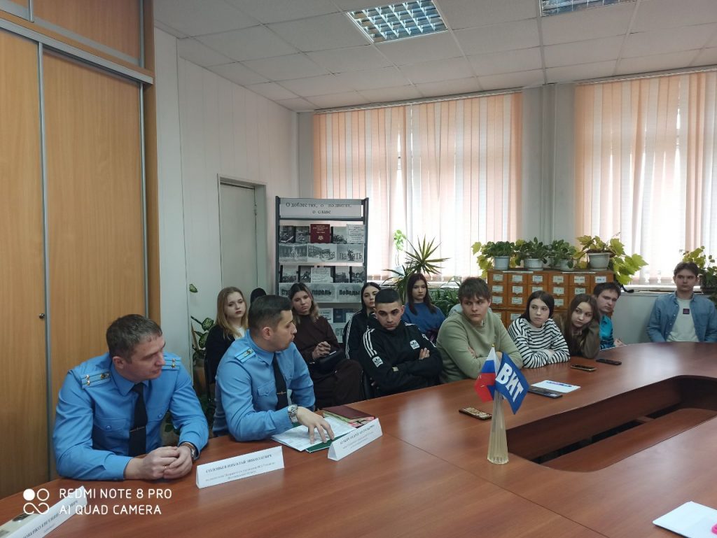 Обучающиеся – будущие юристы активно участвовали в мероприятии. Представители Федеральной службы безопасности – подполковник Соловьев Н.Н., майор Бучкин А.А. рассказали о требованиях к кандидатам на службу ФСБ, особенностях прохождения службы в подразделениях ФСБ. Адвокат Удовенко Е.П. отметил в беседе профессиональные и этические аспекты деятельности адвоката в суде. Специалистом Центра занятости населения Леонтьевой И.П. были освещены вопросы содействия занятости молодёжи. Ведущий встречи – зам. директора по УПРиДО Гайдадина И.В., с участием зам. директора по УВР Двиняниной И.В., начальника отдела УМР Струк Е.В., куратора Сарайкиной С.В.