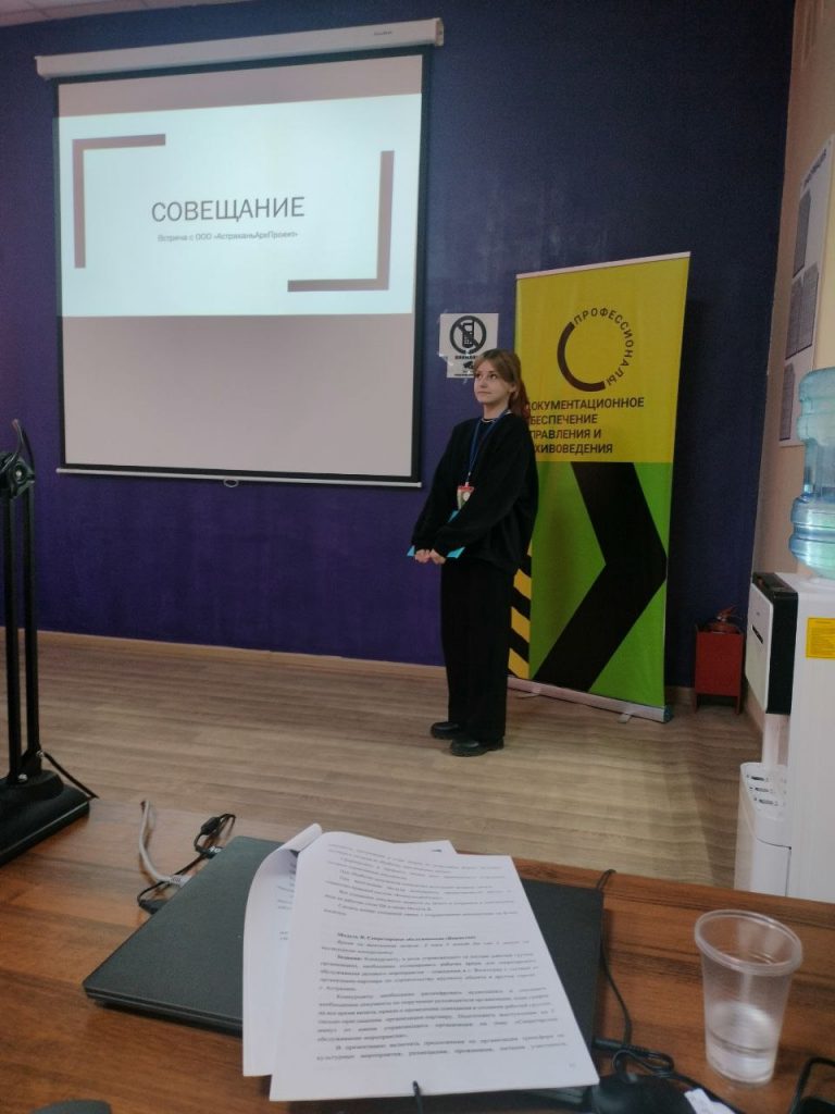 День 2. 06.02.2025.  Региональный этап Чемпионата Профессионалы”, компетенция “Документационное обеспечение управления и архивоведение”. Модуль В “Секретарское обслуживание”. При выполнении модуля участники Чемпионата в статусе управляющего организовали Совещание в компании с партнёрами, которые прибыли из другого города.