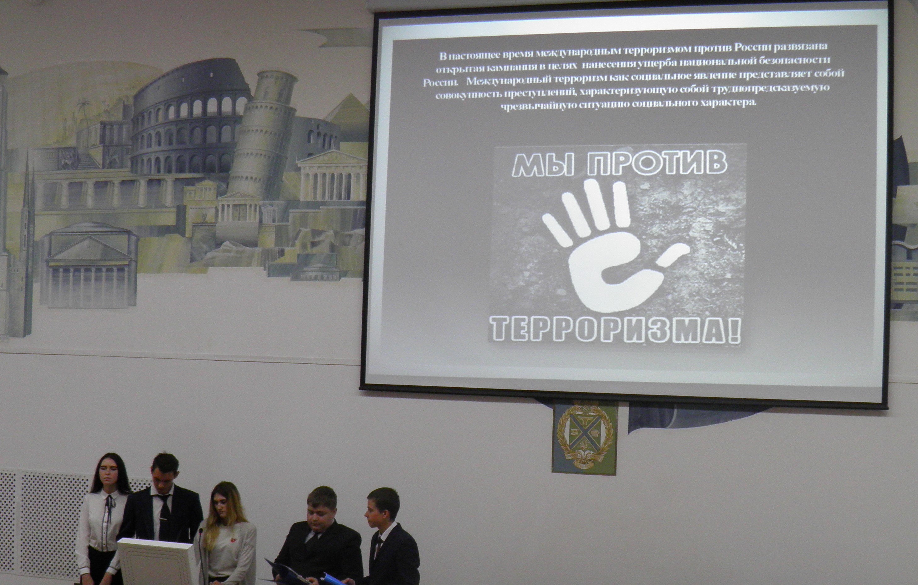 7. Сафронов Д.В., Львов С.А., Корчагин Д.А., Бобышева Т.А., Щеголькова Д.А., руководитель Иванов В.Д. (Мы против терроризма), гр. СЭЗиС-117, 2 курс.