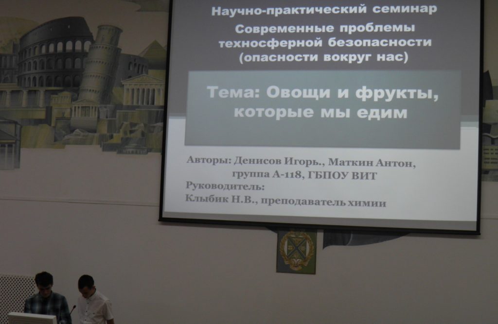 2. Денисов И.О., Маткин А.П., руководитель Клыбик Н.В. (Овощи и фрукты, которые мы едим), гр. А-118, 1 курс.