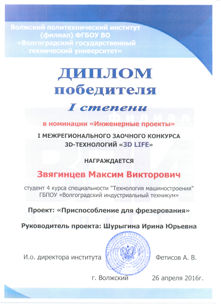 26 апреля 2016 года состоялся I МЕЖРЕГИОНАЛЬНЫЙ ЗАОЧНЫЙ КОНКУРС 3D-ТЕХНОЛОГИЙ «3D LIFE».